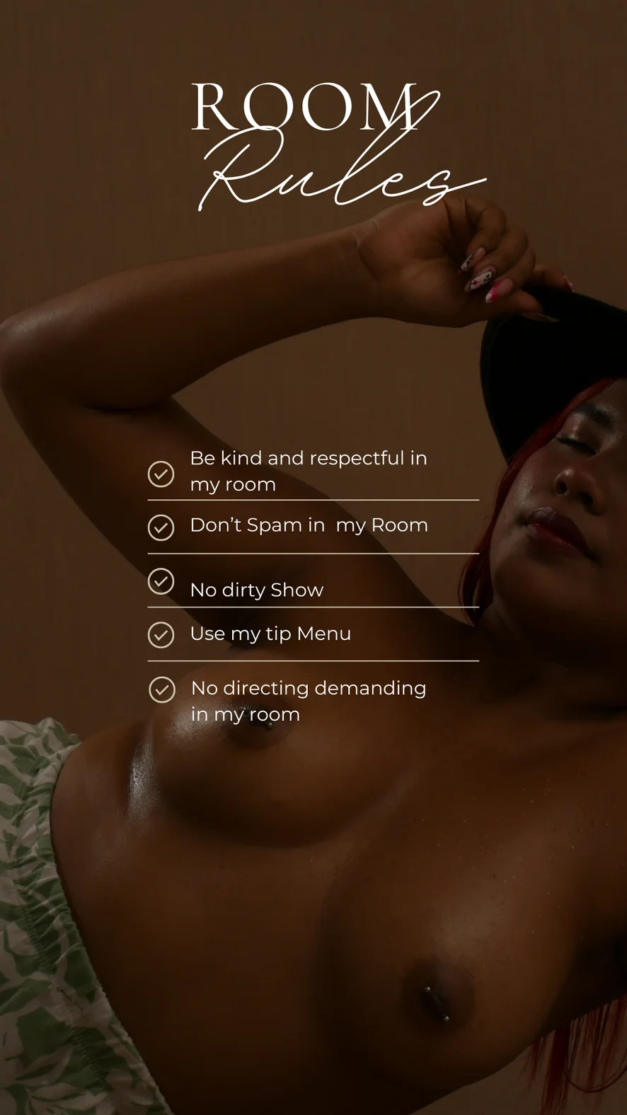 Dans Erotic, Ahegao, Camel Toe, Plesnire, Masturbare cu degetele, Discutii murdare, Striptease, Jucarii Sexuale, Masturbare, Sex între sâni, Orgasm, Twerk, Topless, Spectacol cu ulei, Anal